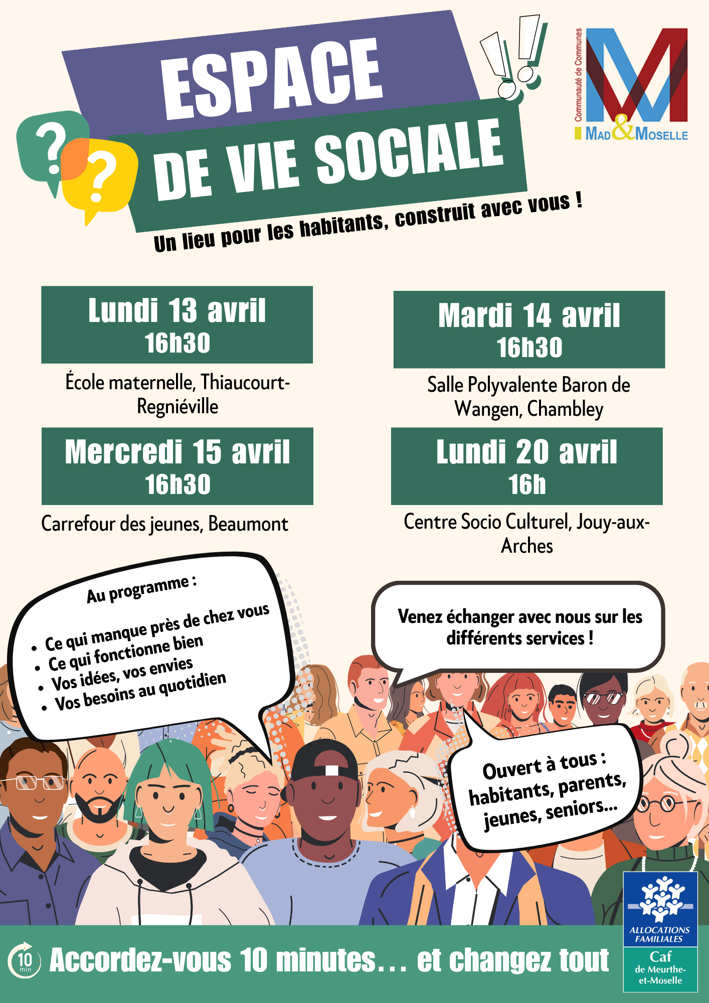 Dans le cadre de sa politique en faveur du lien social et de la proximité, la Communauté de communes Mad & Moselle engage une réflexion autour de la création d’un Espace de Vie Sociale (EVS) sur le territoire.